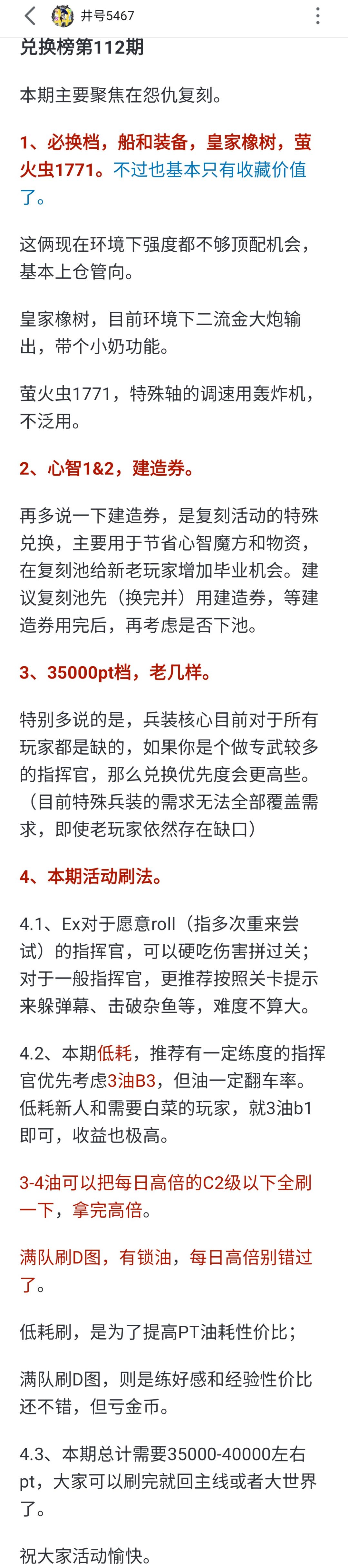这周复刻活动结束,刷地狱火的同时,pt估计都刷的够够的了,但不排除有的懒人没刷够pt[表情_斜眼笑] 这些都不妨碍了解这期兑换榜,以下是超长原文,希望能对大伙有所帮助哈[表情_开心]