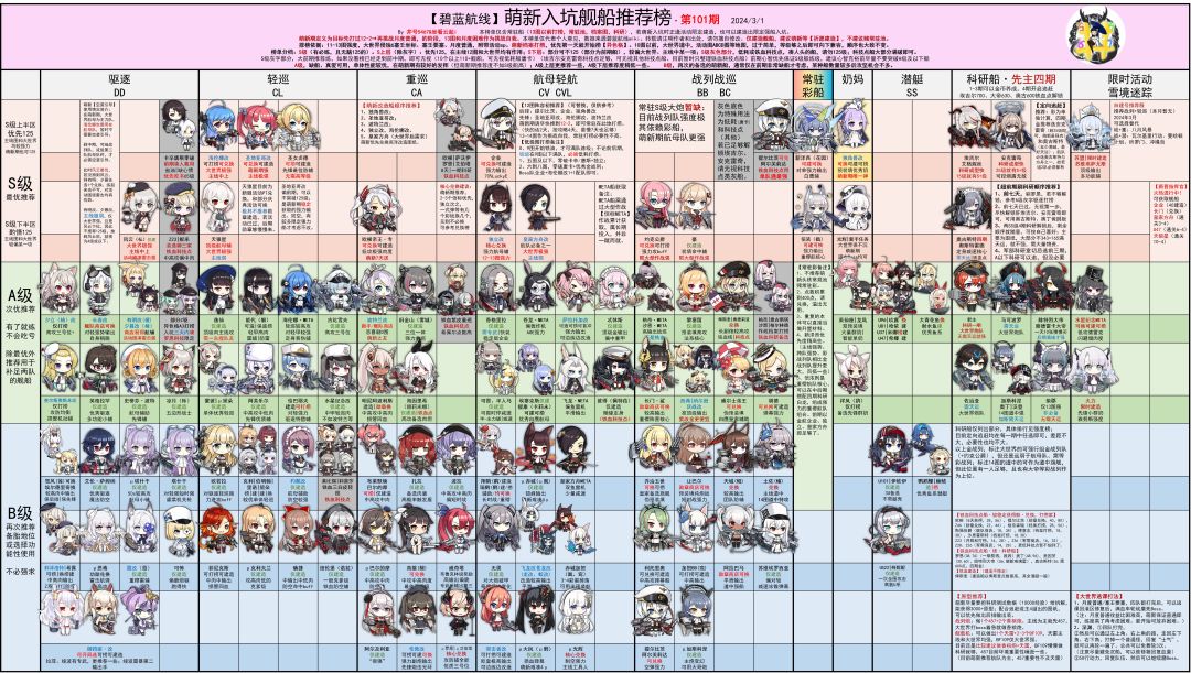 又到新的一年彩船大活的时候啦,也是萌新最适合入坑的时候了[表情_开心]老规矩,整个萌新最需要了解的最新萌新榜,希望能对萌新有所帮助哈。 以下是原文 萌新榜101期 1、新增雪境迷踪活动舰船。 1.1、新增苏盟,S级上半区。顶级彩战输出,减速辅、易伤辅、北联辅、航母辅。主线强力,大世界也是顶配炮队成员之一。 萌新可得最强战列,强烈推荐,比花园、胡滕、大帝都强,彩布里无脑优先给苏盟,凑齐2建造彩战列,