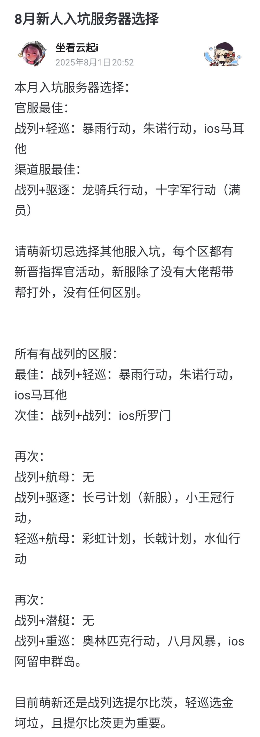 最近也是要开新服了,估计会有更多萌新入坑哩,所以建议先看下最新萌新榜[表情_歪嘴笑] 以下是原文,希望能对大伙有所帮助哈[表情_开心] #碧蓝航线抽卡