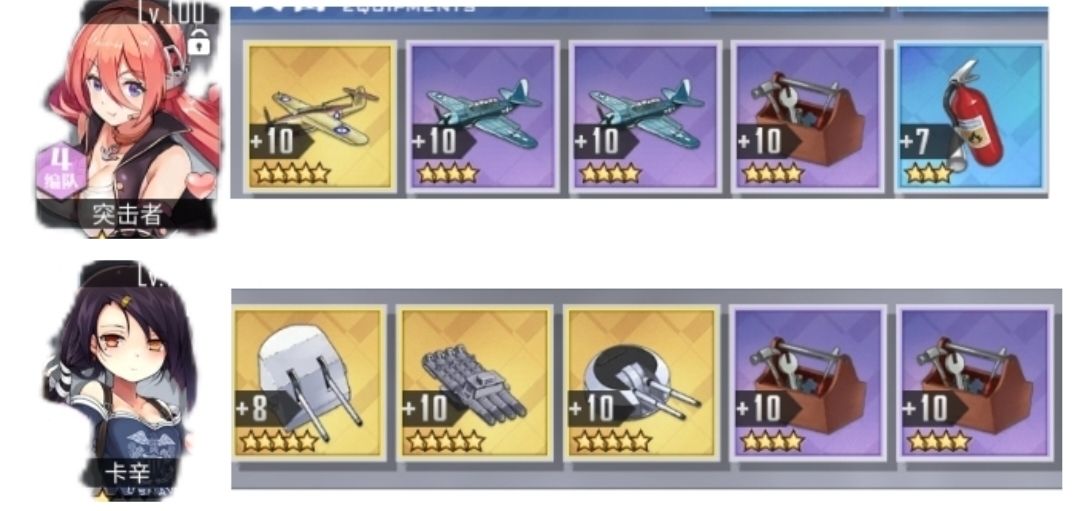 仅面向刚入坑,没有跨队配置,缺油但有时间或条件挂机的萌新。 道中队: 主力装备(从左到右)依次为:梭鱼,SB2C, SB2C, 维修工具,灭火器 先锋装备依次为:金高平,金四磁,金113,维修工具X2 道中有小概率翻车,主要是后排主力在面对密集的泥头车,飞机海以及跨射的时候有可能会炸,所以设备上选择生存设备。 先锋装备在绿海之后可以考虑把一个维修工具换成鱼雷棒。 针对8周年的优化:发现8周年的自爆