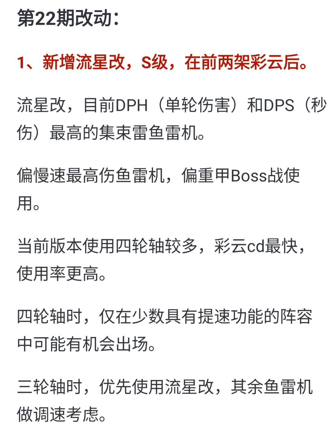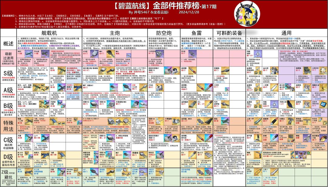 新的一周到来了啦,这周是活动结束周,是月底大世界刷新周,是25年第一周。[表情_吃瓜] 接下来我们看下最新装备强化榜,希望能对大伙有所帮助哈[表情_开心] 以下是超长原文[表情_微笑] 金部件榜第18期 1、新增第二个金四磁改备注 目前有了第二个金四磁改,而且在可预见的未来,就算接下来活动和兑换等不出,也会在一年半后(童心学院复刻)有第三个,两年后本活动复刻有第四个。 所以,其余水面鱼雷的作用进一