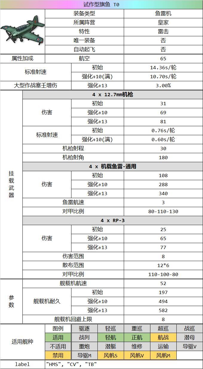 ☞ 新增研发装备简评: 1. 旗鱼:三甲均衡+单点推波齐备的泛用鱼雷机,虽然没有彩飞龙那样的拦截机 但是CD短,综合性能好且后关岛拉菲2的时代真不差后排防空 所以实际上是从主线到据点到高难攻坚会有用的 主线在前排防空拉满的情况下就可以欣然替换彩飞龙 据点起码给露娜这类半预装填的好用(强化收残,推波可能更需要哈尔滨的协助了) 高难攻坚则是怨仇 企业 信浓都可以考虑 有平铺+10的价值,但+13价值暂