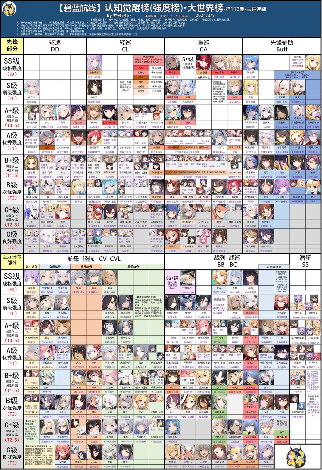 紧接着搬一个最新强度榜给各位参考用,希望能对大伙有所帮助哈[表情_开心] 以下是原文 觉醒榜119期 1、苏维埃萨尤斯(苏盟),主线榜S+级,大世界榜SS级。 主线部分,仍然是俾斯麦2的空弹最强,武藏+天鹰的强力组合更显强势。 苏盟也是在俾斯麦2和武藏之后的战列第一梯队,大范围AOE弹幕,可以搭配伏尔加+独角兽的道中组合,高输出且减点燃等小辅也契合主线环境。 目前苏盟技能才刚刚满级,有待进一步测试