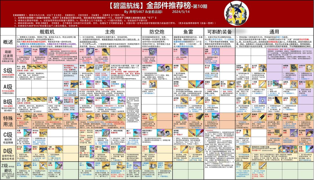 最近活动的装备加了不少,同时最近萌新入坑的也多了,搬了最新一期的装备强化榜。[表情_吃瓜]篇幅有点长,可直接看底下大图。[表情_开心]希望对大伙有所帮助哈,以下是原文[表情_微笑] 金部件榜第10期 1、新增近期的500-550耐久设备,统一调整档位。 把目前常用较多的500-550耐久设备,均纳入D档同一栏。 新增近期的异世界冒险终端、蓝毛巾等。 1.1、肉度向:蓝毛巾≥作战模拟指令≥维修>冒险