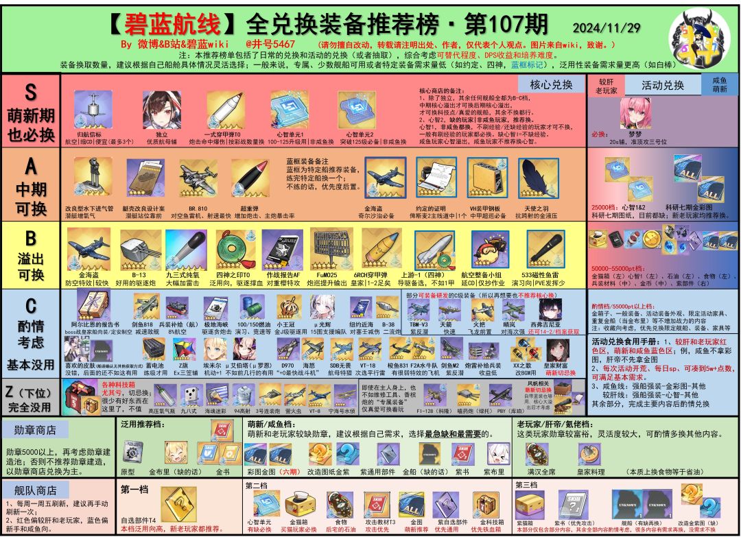 以下原文 1、 必换档,梦梦20s攻辅,准顶攻三号位。觉醒榜(井版强度榜)S-~S级的辅助,非常推荐大家拿到手,甚至有一定可能日后出现在顶配。特别多说,本期活动的七款装备、六款专武,均是活动任务或者小游戏获取,并非兑换。非常推荐大家把简评提到过的舰船专武,以及之前简评提到过的三款装备拿到手,以免以后用到的时候没有。2、25000pt档位,心智1&2,科研七期金图彩图。目前较肝老玩家应该已经心智1溢