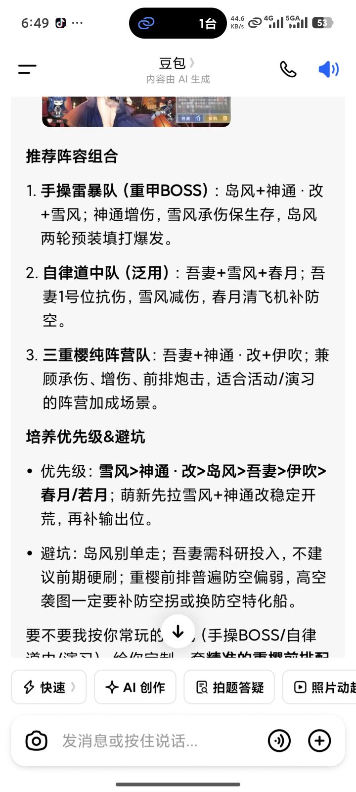 我查豆包给的推荐,这个配队OK吗,要是可以我就养岛风了,科研船满破太难了
