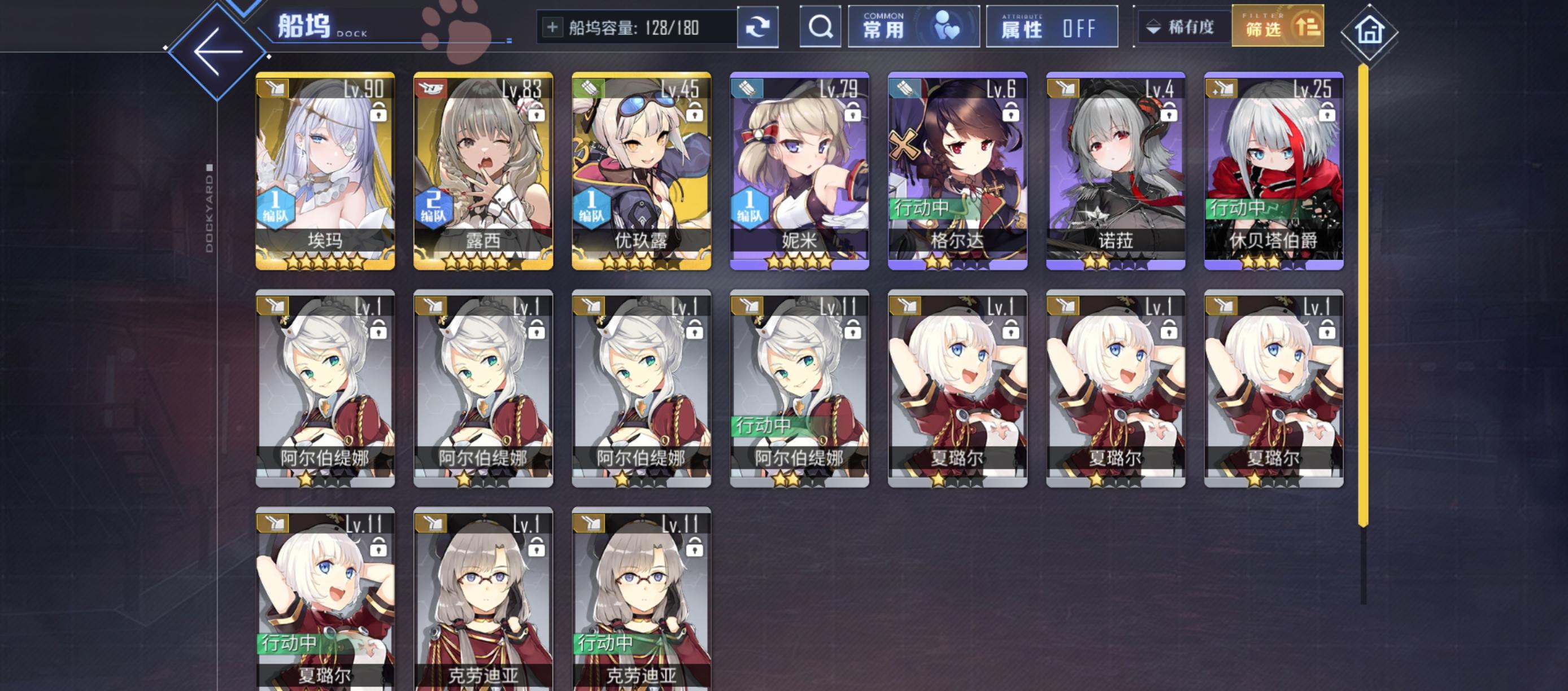 彩船全有,金船基本全在120左右,装备一般,科研彩装不多拉斐尔道中,狮boss(金狮28科研),现在两边压力都挺大的,动不动就掉人,这个配队是在b站抄的,说是无脑红海不掉人,我实际用下来有点艰难。有无大手子配个队
