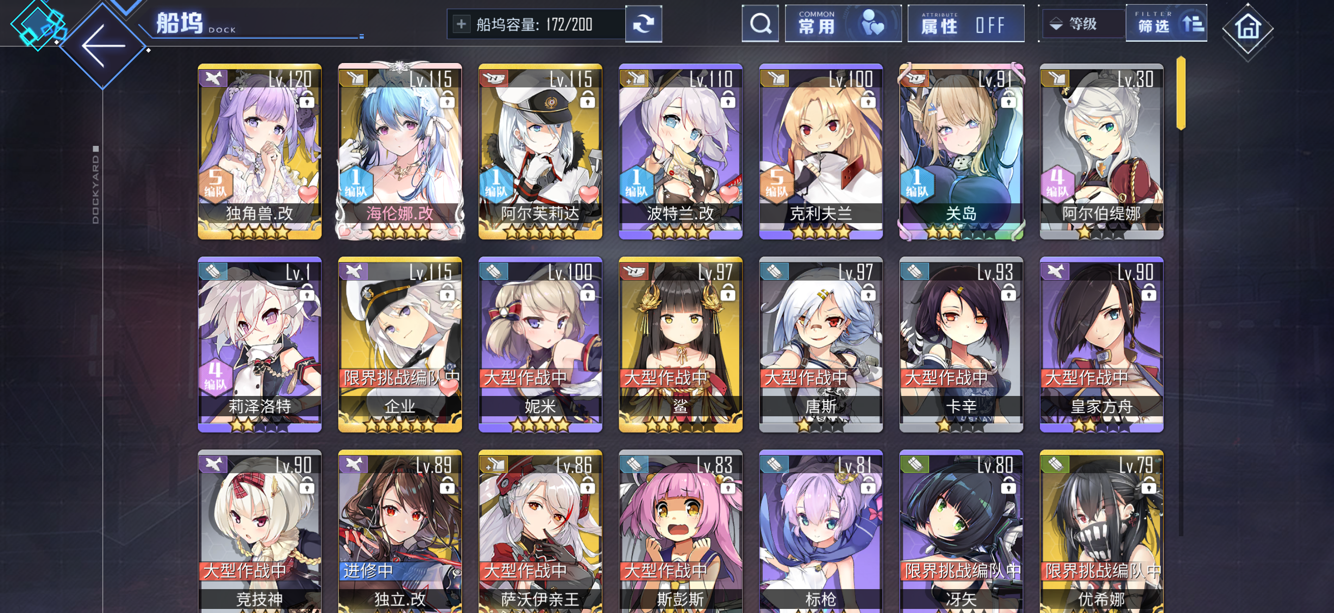 彩船全有,金船基本全在120左右,装备一般,科研彩装不多拉斐尔道中,狮boss(金狮28科研),现在两边压力都挺大的,动不动就掉人,这个配队是在b站抄的,说是无脑红海不掉人,我实际用下来有点艰难。有无大手子配个队