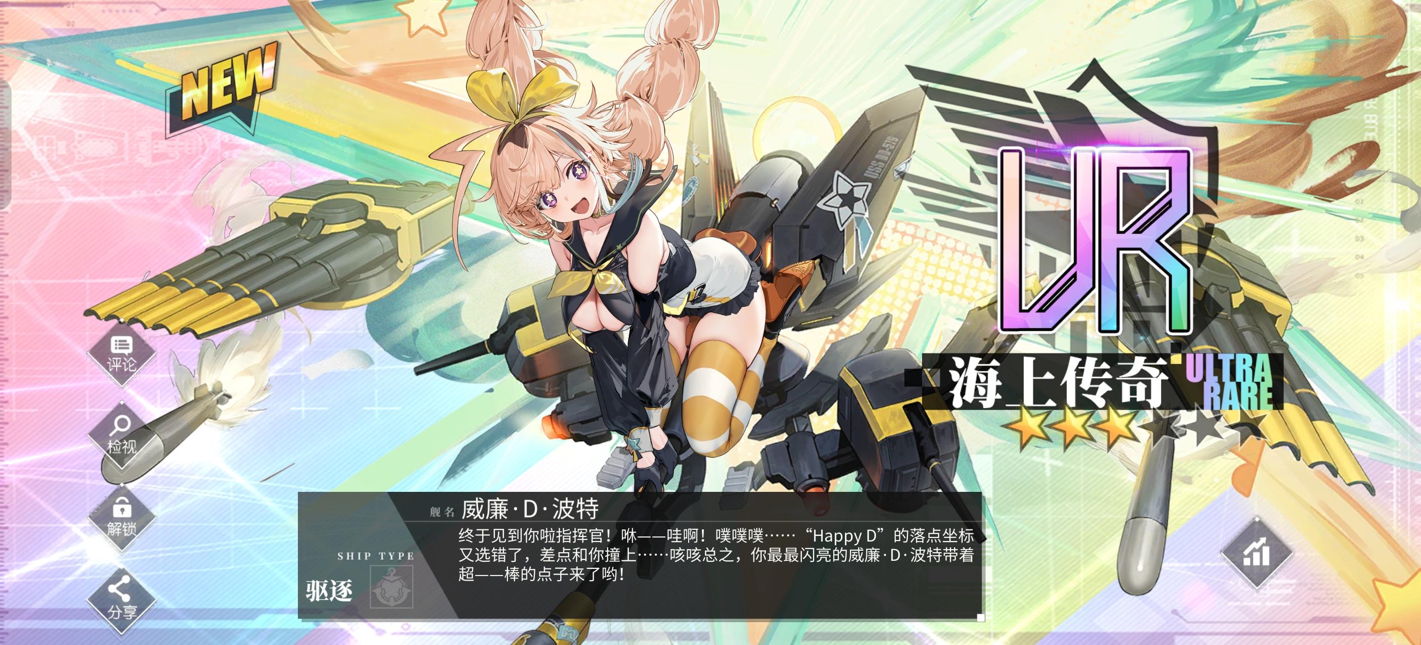 谁懂啊?点开更新的瞬间直接被信息量砸懵——新UR列克星敦II一身蓝调长裙,淡粉长发飘起来的样子又仙又飒,不愧是“蓝色幽灵”,气场直接拉满;还有加载条上跑了九年的威廉·D·波特终于实装,活力小魔女造型一出来,进度条动画都跟着换新,这波情怀杀我给满分! 更别说那些换装了,简直是把“诚意”两个字焊在皮肤上。约克城II的双形态换装绝了,酒吧里半脱高跟鞋的慵懒,切换成趴坐吧台的娇羞,一份钱get两种心动