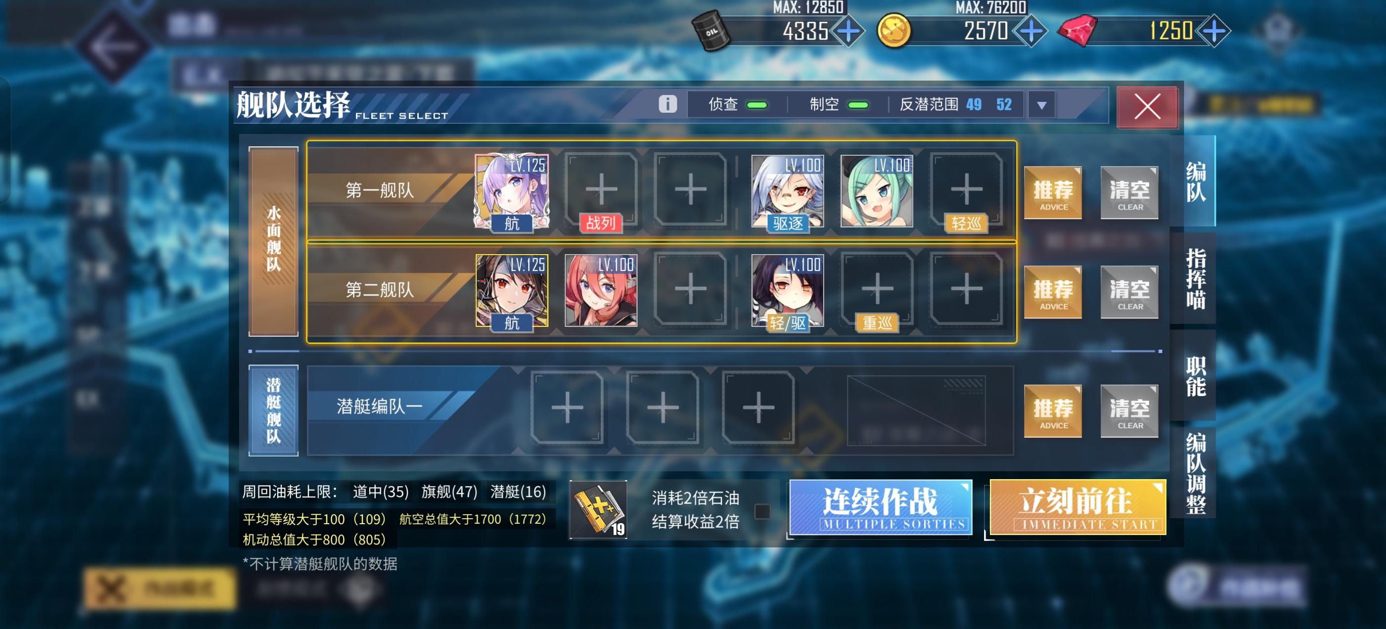 比98或者99油翻车率更低,而且无需跨队强船。我觉得很有意思的点:①以我的练度,给突击者带舵机,独角兽带权杖正好凑满800机动门槛,实战发现突击者boss战无生存压力,不会因为给前排带舵机导致翻车率增加。②如果没有足够的金液压凑航空值,只需要在boss队加一个0破博格,缺机动就在boss队加一个0破驱逐,对萌新很友好,且只增加1、2点油耗。③道中队把刺猬弹放在生存压力很小的二号位,让一号位带