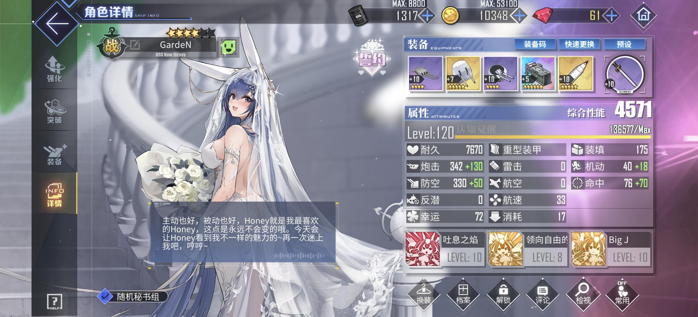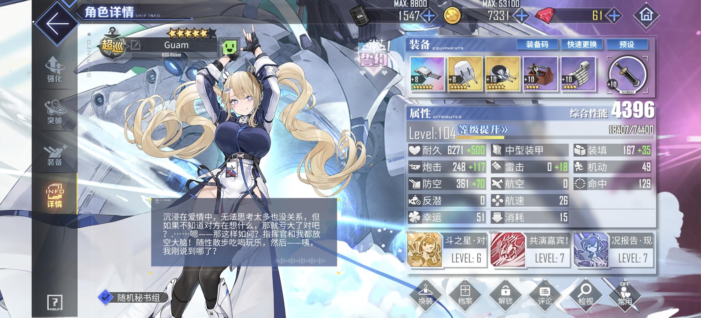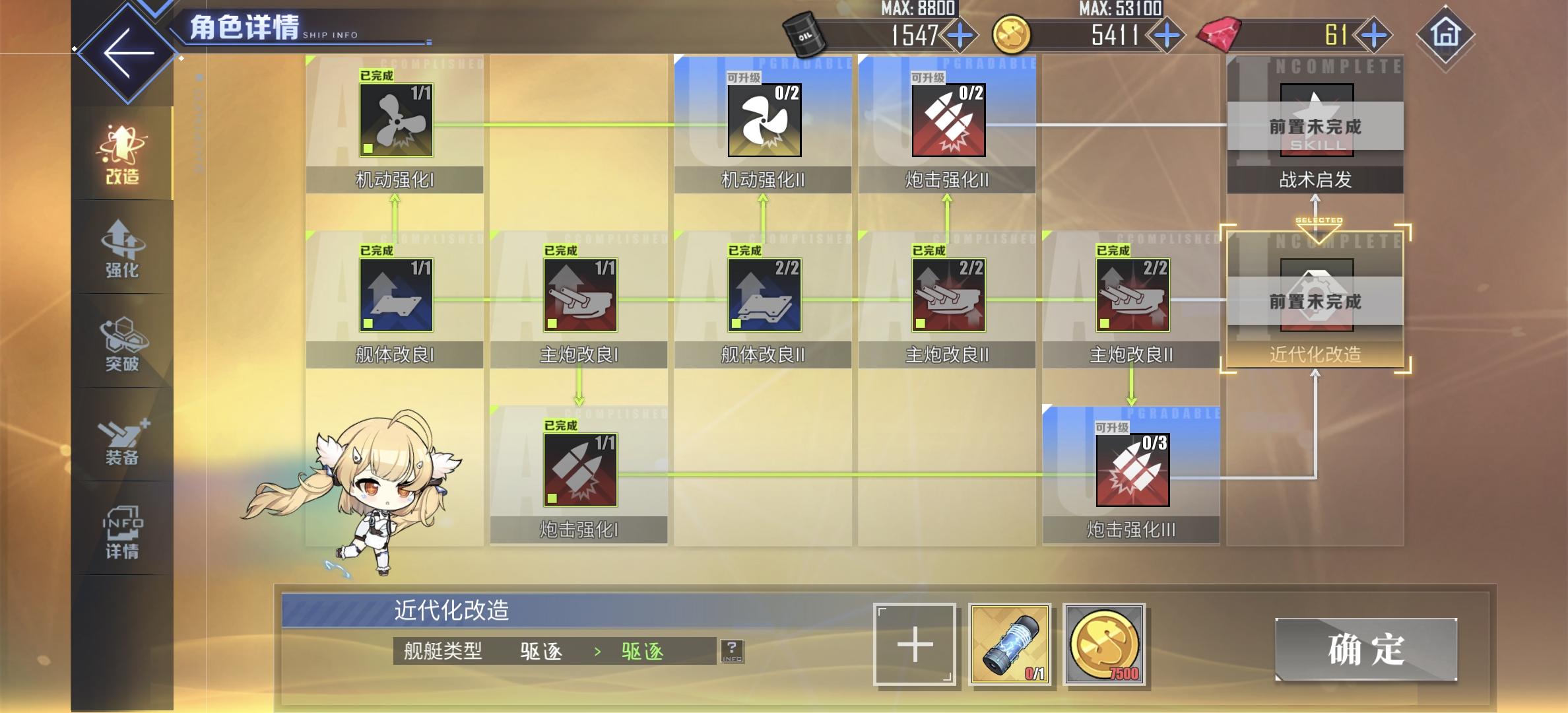 *目前组个单队能无弹自律过sp了,实乃可喜可贺但ex还是被一脚踢死*今天婚了花园和关岛*刚入坑看榜练这练那导致狗粮分摊不均以至于凑了个伪三队出来但又没多大战力(这波纯主笔操作*目前想常驻兑换武藏换掉长门丢委托攒经验顺带把拉菲II的等级拉起来替掉拉菲I,组去大世界遛遛练练级啥的(长门你很可爱但是你弹幕触发概率真的好低啊)*貌似入坑晚了些错过了举高高的改造材料,就卡在改造前置那里,想请教大佬