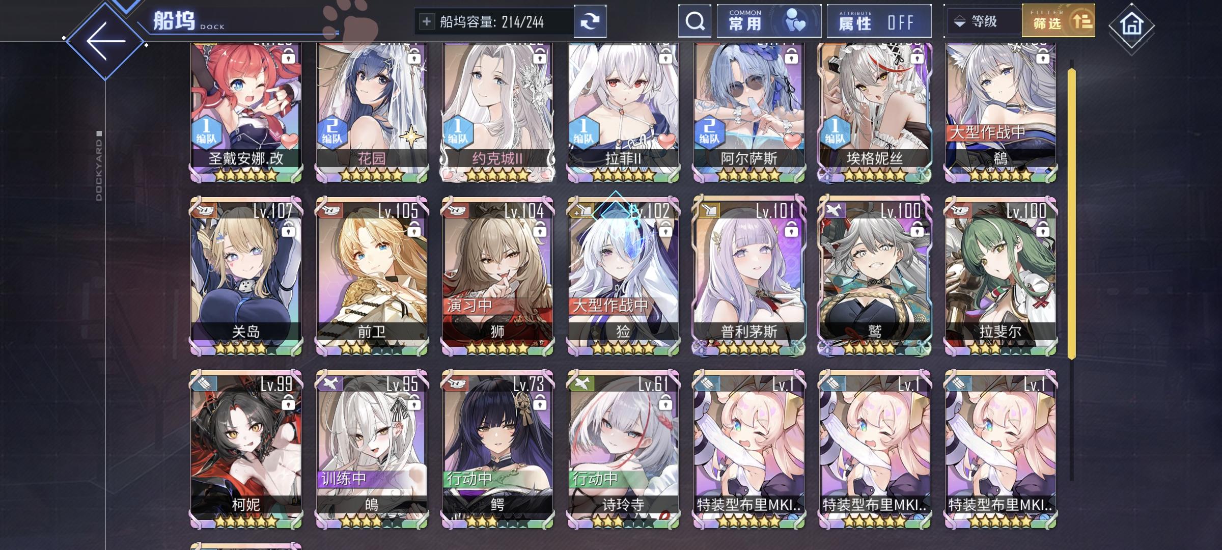 *目前组个单队能无弹自律过sp了,实乃可喜可贺但ex还是被一脚踢死,不过无关紧要*今天婚了花园和关岛()*刚入坑看榜练这练那导致狗粮分摊不均以至于凑了个伪三队出来但又没多大战力,这波纯主笔操作了*目前想常驻兑换武藏换掉长门丢委托攒经验顺带把拉菲II的等级拉起来替掉拉菲I,组去大世界遛遛练练级啥的(长门你很可爱但是你弹幕触发概率真的好低啊)*貌似入坑晚了些错过了举高高的改造材料,就卡在改造