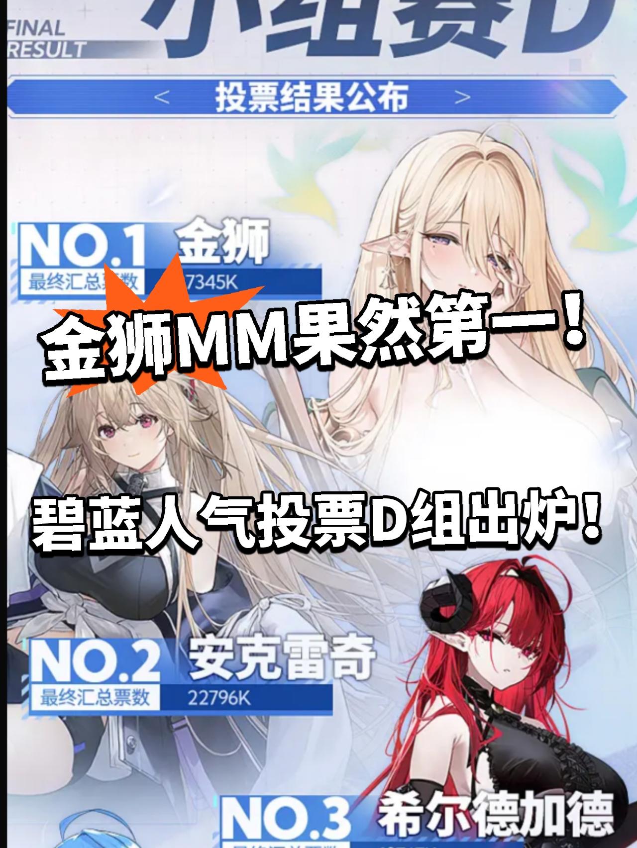 碧蓝人气D组结果出炉!冠军毫无悬念!