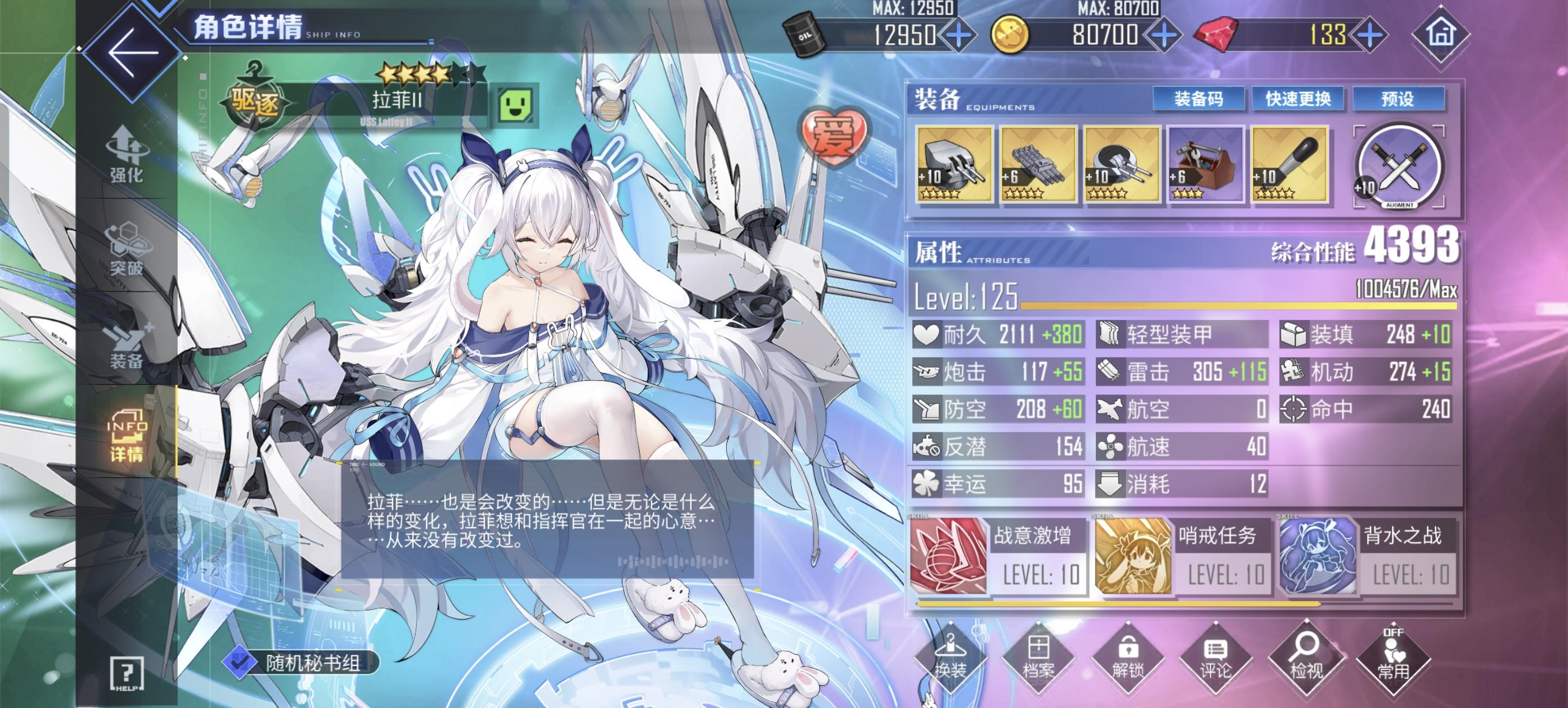 拉菲二我想不用满破也能用再加上彩布里紧张就没满破,现在复刻了,直接立省两个彩布里#碧蓝航线 #游戏日常
