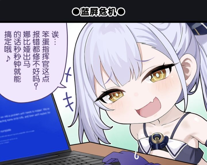 #碧蓝航线 ◆蓝屏危机◆紧急任务途中突遇系统蓝屏,进度告急!指挥官,需要支援嘛~?💻突发情况指挥官是否遇到过关键时刻电脑“罢工”的情况?如果有应急的心得,请传授给小加加吧!(/ω•\*)※指挥官可以于「漫画」欣赏更多游戏一格漫画哦~