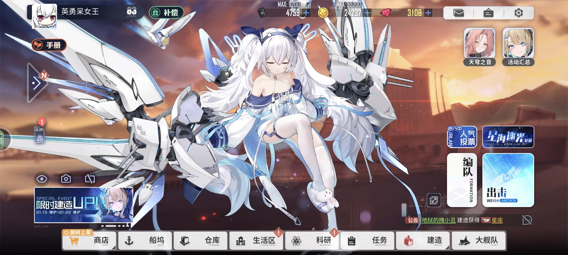 各位亲爱的指挥官: 司令部将于1月22日10:00~16:00对以下港区进行为期6小时的改造建设(如有变动将会另行发布通知)。改建期间将暂时无法进入港区,还请各位指挥官提前做好下线准备,给各位带来的不便敬请谅解。 『涉及港区』 安卓全港区、iOS全港区、HarmonyOS NEXT全港区 『改建内容』一、内容新增1.开启限时活动「光影风尚——拍摄进行时!」,活动时间1月22日维护后~