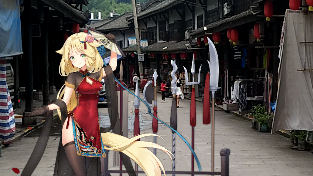 《碧蓝航线》去古街玩,果然古街适合碧蓝航线取景啊。(可是,碧蓝不能隐藏舰装舰炮啊?一条古街端着一个舰炮出来,太不协调了)