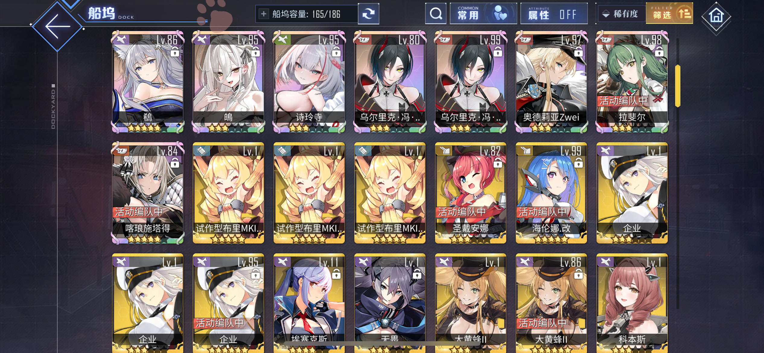 玩了大半年,也是从开始的求贤若渴到现在的妻妾成群,从进取到咸鱼,这可能就是碧蓝玩家的最终形态😎