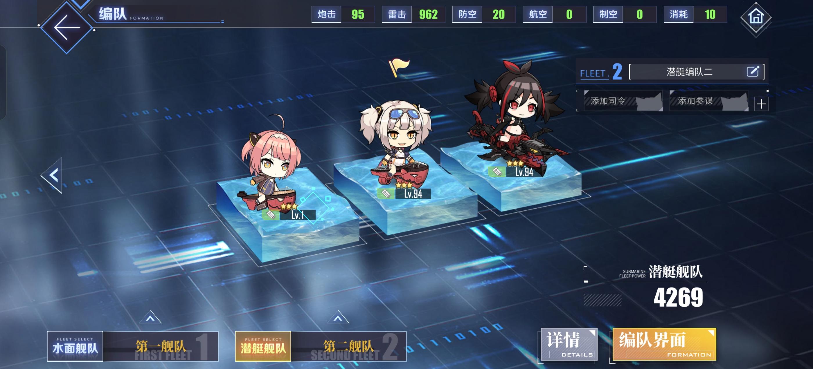 比98或者99油翻车率更低,而且无需跨队强船。我觉得很有意思的点:①以我的练度,给突击者带舵机,独角兽带权杖正好凑满800机动门槛,实战发现突击者boss战无生存压力,不会因为给前排带舵机导致翻车率增加。②如果没有足够的金液压凑航空值,只需要在boss队加一个0破博格,缺机动就在boss队加一个0破驱逐,对萌新很友好,且只增加1、2点油耗。③道中队把刺猬弹放在生存压力很小的二号位,让一号位带
