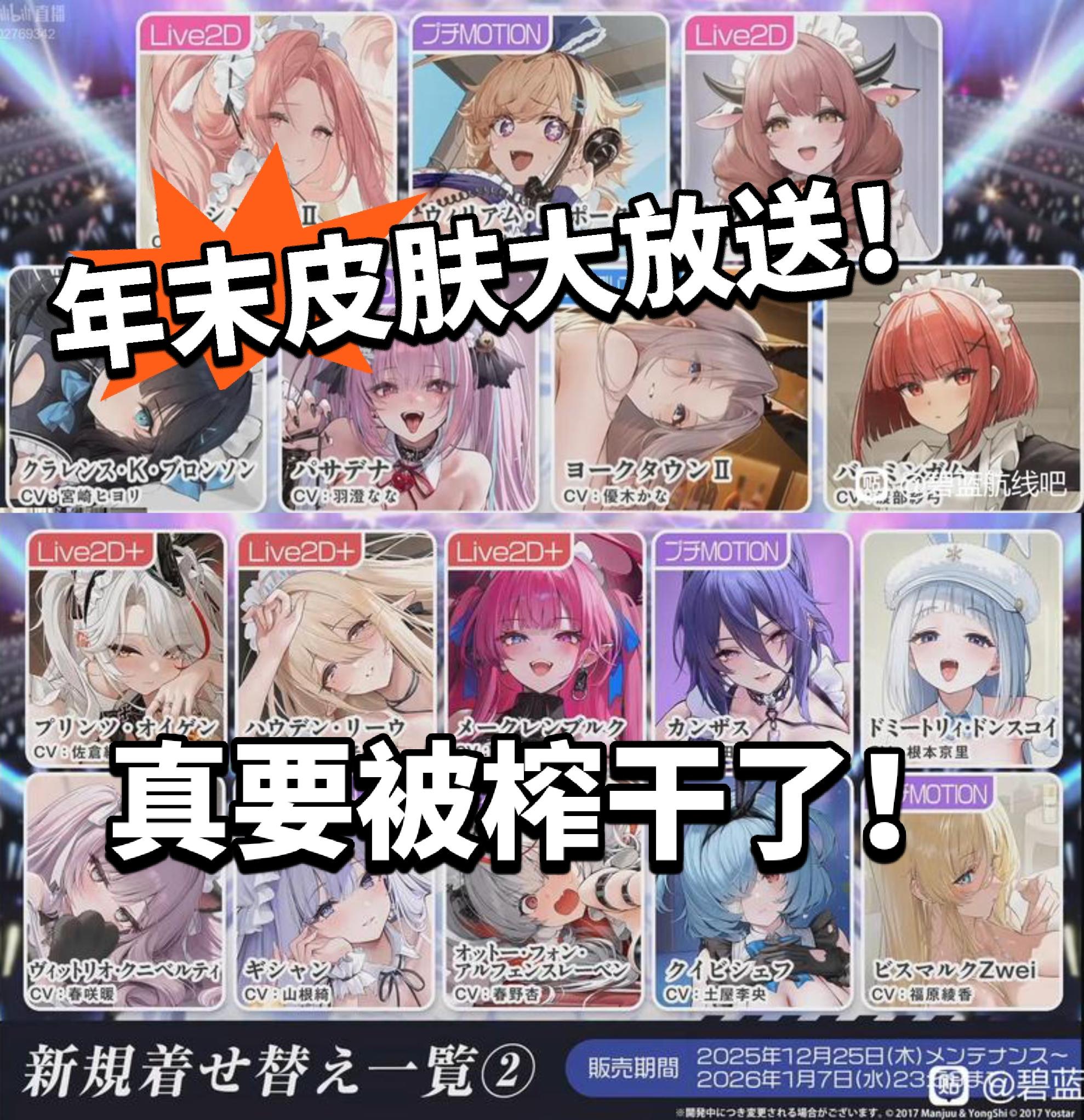 大的来啦家人们!临近25年末之旅 碧蓝航线彻底开始放大招了,推出17款绝美皮肤!彻底要把玩家钱包榨干了!但是不买还不行,热议度直接拉满! 这次一下子放出了17款新皮肤,有软萌的女仆装、可爱的猫耳造型,还有之前大家喜欢的兔女郎款,好多都是带动态效果的Live2D。触摸还有专属互动彩蛋!那宛如亲手抚过的面庞,灵动的波浪实在是太魅惑了! 约克城II还出了双形态皮肤,切换时动作极其流畅。关键是有免