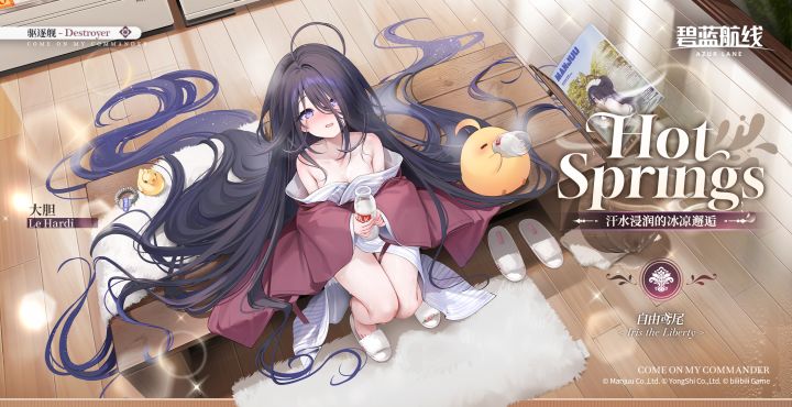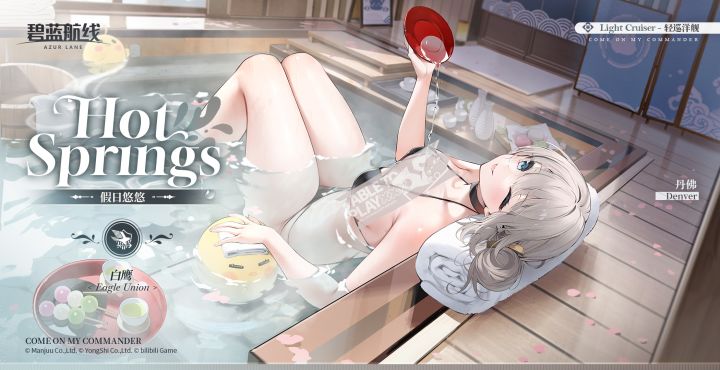 #碧蓝航线 丹佛换装「假日悠悠」参上~将于下次维护后限时贩售登场!“呼啊——这里的温泉泡着超放松的~指挥官工作完也累了吧,一起泡会儿吗?”※实装效果以游戏内为准
