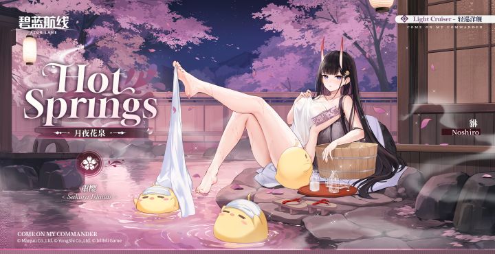 #碧蓝航线 貅换装「月夜花泉」参上~将于下次维护后限时贩售登场!动态立绘同期实装~“边沐浴夜风边欣赏月色,享受夏日气息,与心仪之人畅谈…真是不错的温泉呢。话说回来……您的毛巾掉了哦?”※实装效果以游戏内为准