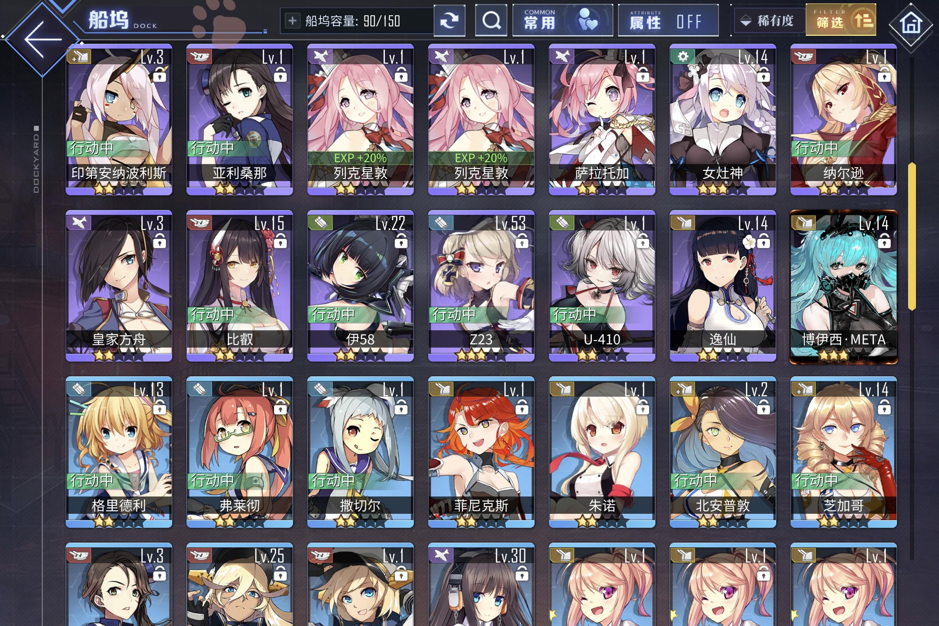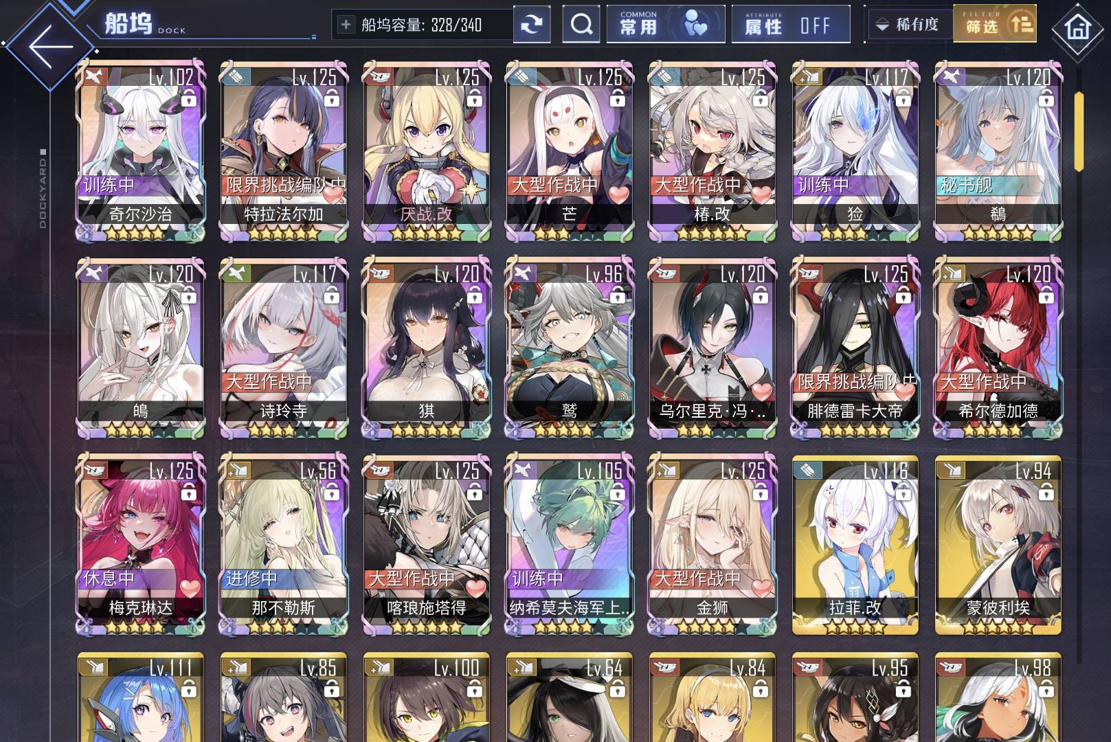 更新下练度现在有点尴尬的是认知觉醒要满突,但我的资源不支持我突破太多金船,现在在刷活动金船,很多船都要满100了,但是我又觉得突破了亏,也找不到其他适合练的船,然后回归任务最后两个奖励也拿不满。分割线——————————————————————————之前自建了一个号,感觉挺爽的,送超多装备材料,开局就送一队堆土机,美中不足的是随便选的区,勋章没提子和圣地亚哥,也没有红尖尖