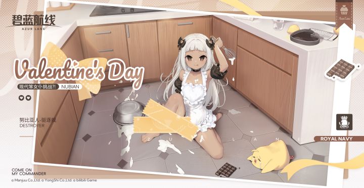 “欢迎回来,指挥官~要是想要皇家女仆的服务,还请选巧克力之外的任何项目哦!欸嘿☆”限时活动【甜蜜工坊II】即将开启!指挥官,请收下这块满含心意的巧克力吧~!活动时间:2025年2月13日维护后~2025年2月27日维护活动期间,完成七日活动任务,可获得努比亚人限定换装「现代笨女仆挑战?!」~※实装效果以游戏内为准