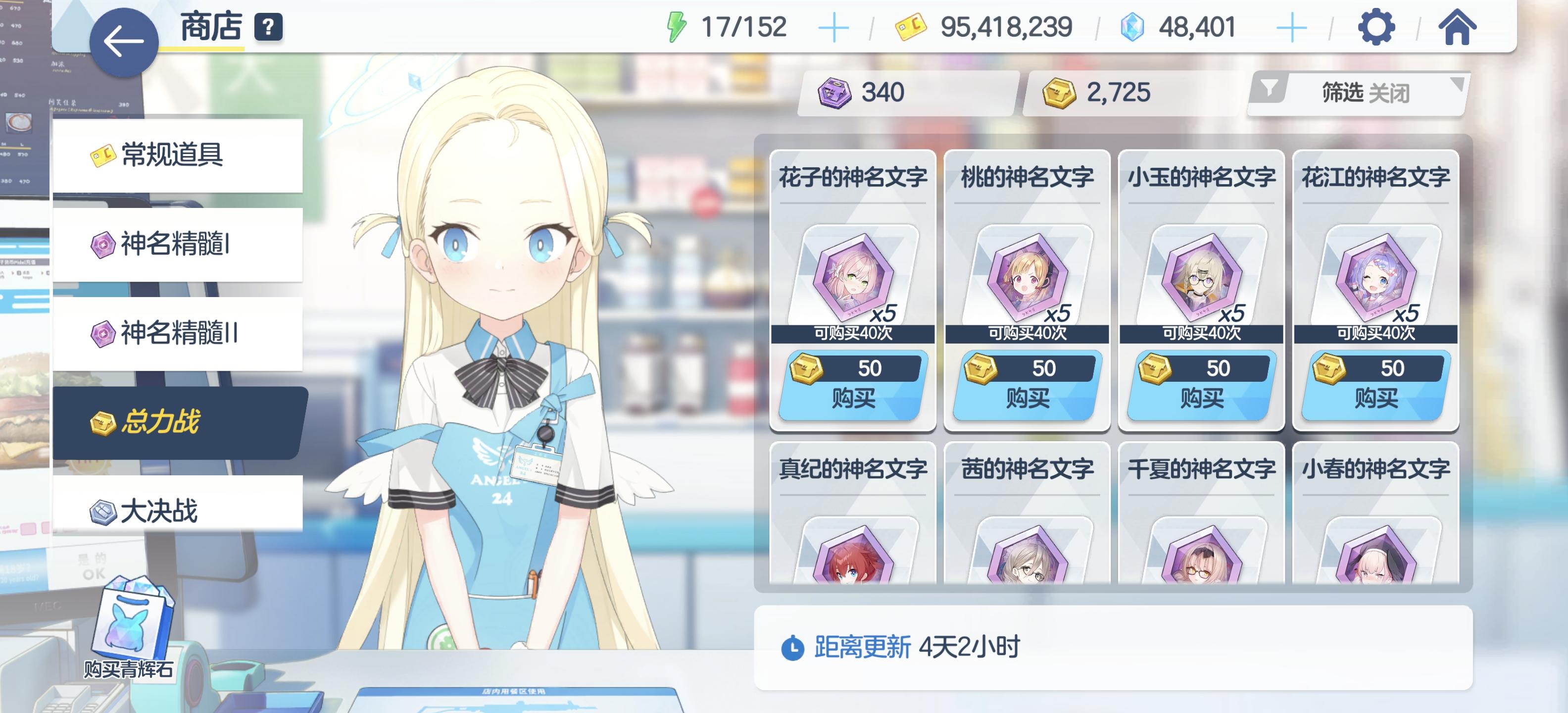 抽卡必抽人权伊吕波,真限定花瓶初音看个人需求,其他的常驻都可以跳过,考验气运的时候到了!抽卡建议就是抽到角色就跑,按基础概率是146发左右,看大家几发出货up角色了。 注意手里要留一些石头,抽卡不要太上头,牢记无井不下池。后面还有水星野和水泉奈,到时候要有一井半的石头抽卡,手里最少要留半井石头备战。 总力战加速第一发霍德,ins备战需要伊织、星野、吹雪、真记、佳代子、千寻、花玲看到时候作业准备,或