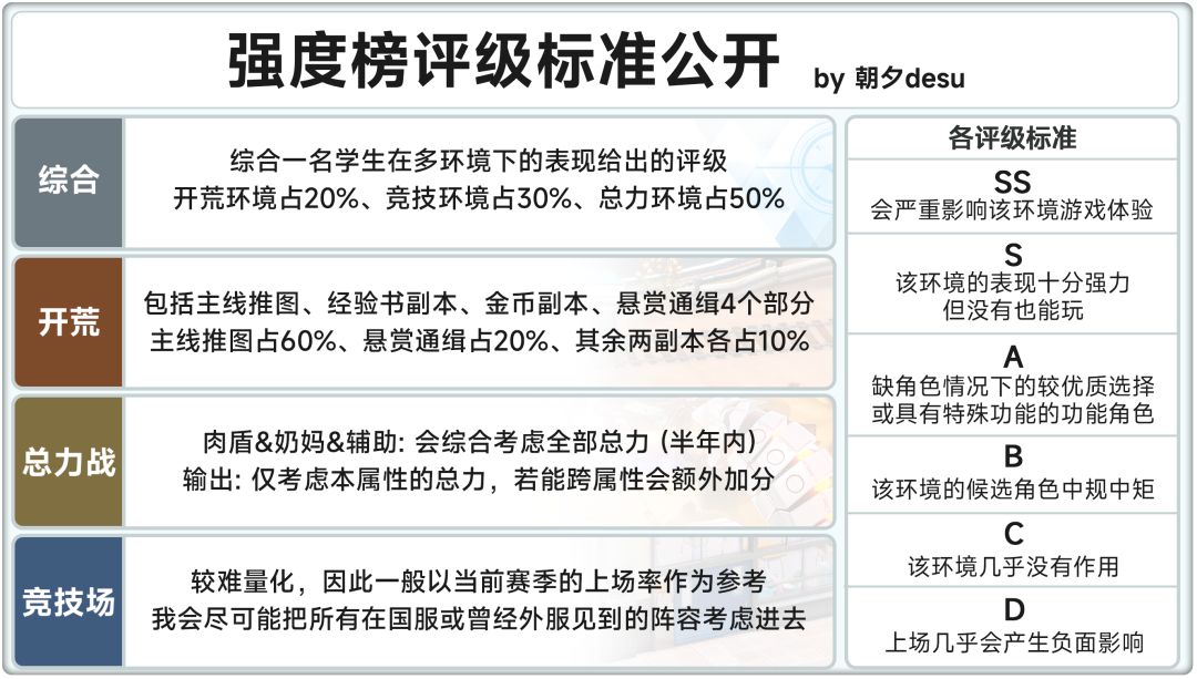 2023/10/12 ~ 2023/10/26蔚蓝档案国服将开启小春、日富美的卡池;全角色细评增加以下角色的评价: 梓 综合S 开荒A 总力SS 竞技B 小春 综合SS 开荒SS 总力SS 竞技B 花子 综合B 开荒B 总力A 竞技A 泳装日富美 综合C 开荒C 总力B 竞技D 泳装梓 综合SS 开荒A 总力SS 竞技A 泳装真白 综合A 开荒B 总力B 竞技SS 泳装鹤城 综合B 开荒B 总力B