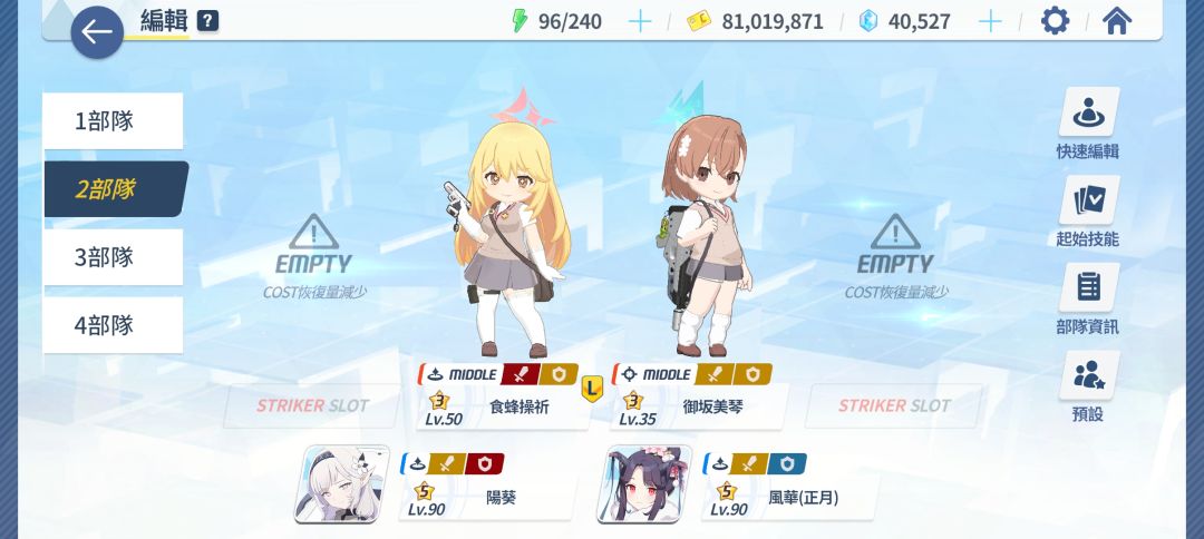 前言: 我是2022年日服“美游热”时期入坑的玩家,逛论坛的时候发现很多萌新发帖问配队的事情,“彩虹队”(4个突击4/3种伤害属性)问题时有,论坛里最近似乎没有关于配队的讲解,一直评论回复治标不治本。 所以参照网上现有教程结合自己游戏经验写下这篇勉强算得上教程的东西,希望能帮到你(更推荐去gamekee上碧蓝档案wiki上看更专业的) 基础知识:队伍 首先,常规队伍分突击4位和支援2位。突击