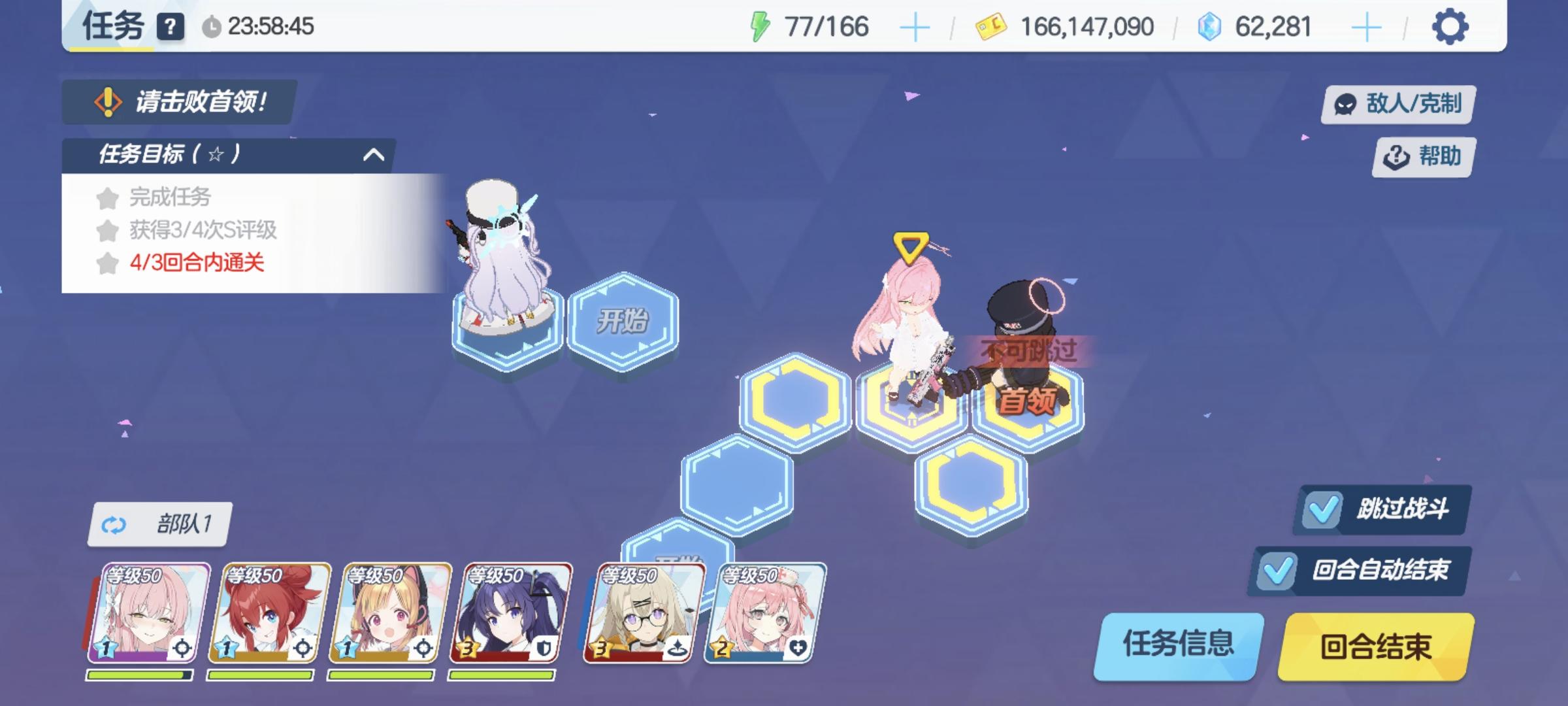 明明任务要求3回合结束,可你必须走四回合才能开始boos战,而且这个模式还有一个专门的奖励让你不得不打,每次我都要先打走格子模式,再打集中指挥。明明刚开始的走格子是可以在极限回合完成任务的,很不理解为什么要玩家多打一遍