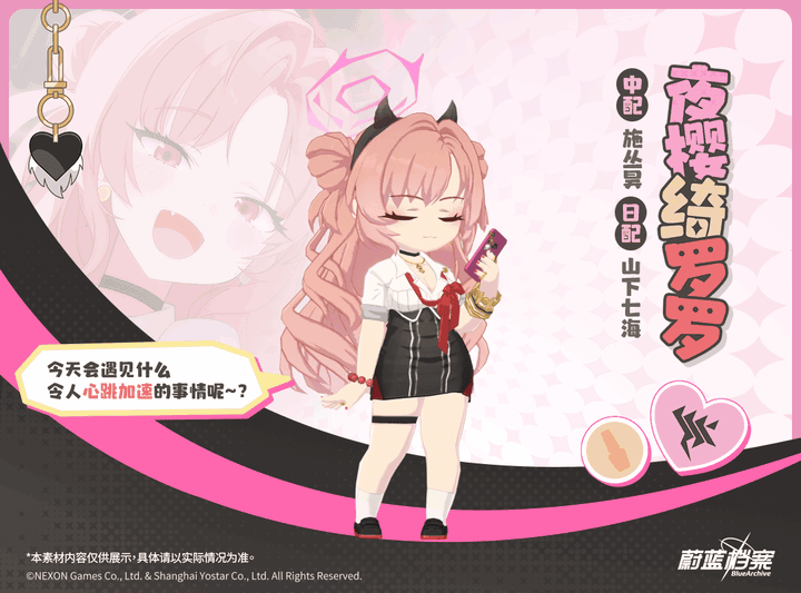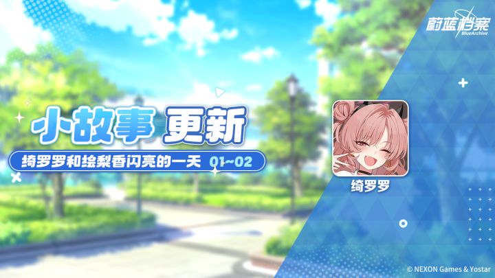 //////////档案启封//////////■ 绮罗罗歌赫娜学院的开朗女生。总是期待着令人兴奋的新鲜事,亲和力相当高,即使面对初次见面的人也能像老朋友般交谈。“今天会遇见什么令人心跳加速的事情呢~?”#蔚蓝档案