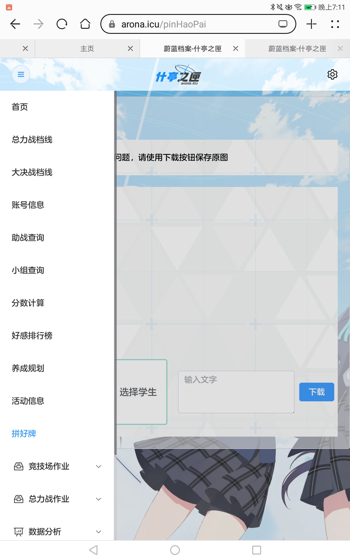 应该大部分ba玩家都有什亭之匣这个网站吧,都用它来借角色什么的……这个拼好牌,桀桀桀桀……