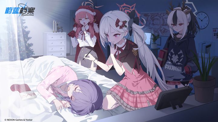 至于为什么会变成现在这样……已经不重要了。或许又是爱露的灵机一动,给了睦月新的恶作剧灵感——也可能她早就想这么干了……总之这应该不关佳代子的事。圣诞袜里塞满了惊喜,远远超过了昨晚许下的小小心愿。希望春香迎着温暖的阳光醒来时,能感受到幸福和美好。(也希望睦月的涂鸦不会太难清洗。)#蔚蓝档案