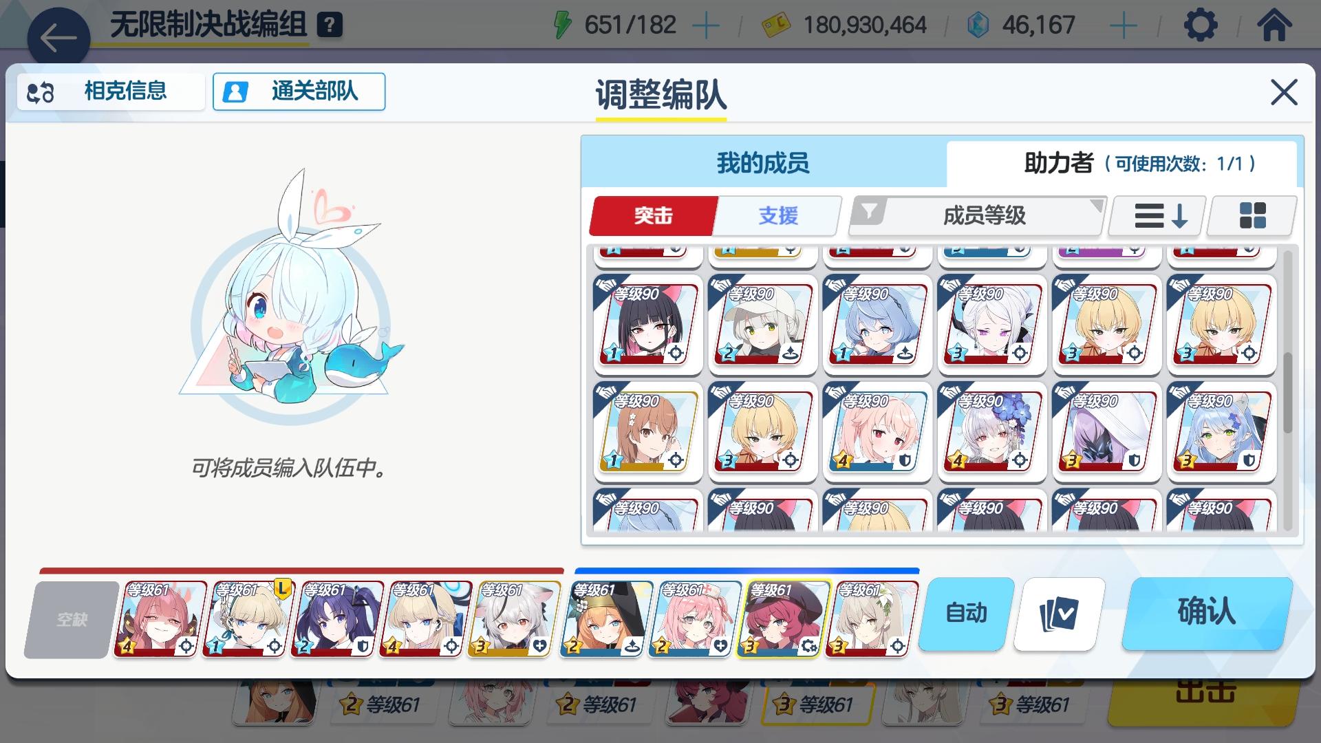 思路:礼奈打伤害,春锅与日鞠给礼奈(本人礼奈有生存压力,所以借的,主要是那两个前排掉血太快了)水星叠伤害,体香缓解生存压力,瞬主要是水白子没位置了,拿来得费用,目前等级太低,只打得起EX,INS打不动#