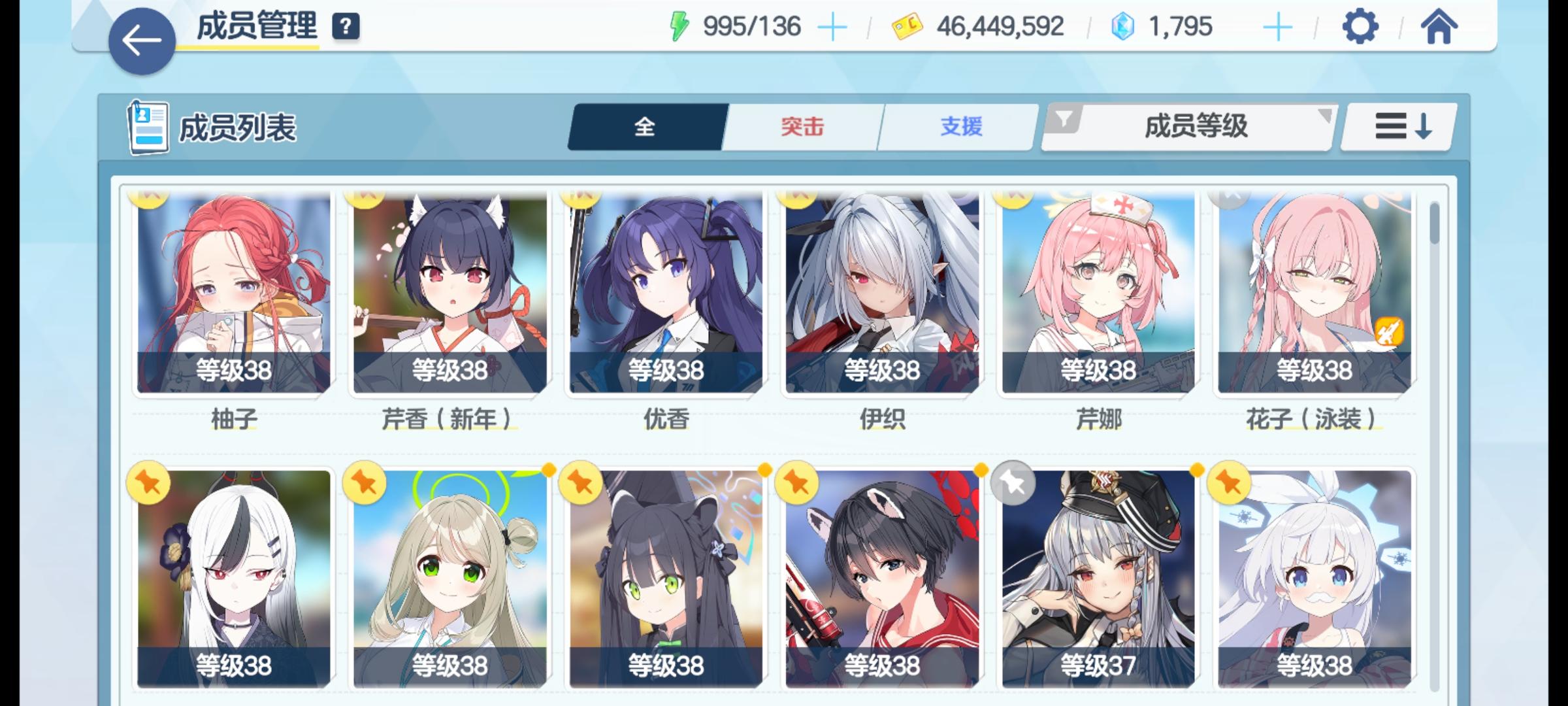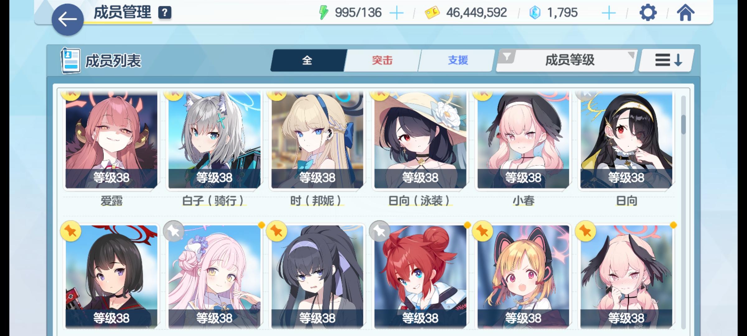 思路:礼奈打伤害,春锅与日鞠给礼奈(本人礼奈有生存压力,所以借的,主要是那两个前排掉血太快了)水星叠伤害,体香缓解生存压力,瞬主要是水白子没位置了,拿来得费用,目前等级太低,只打得起EX,INS打不动#