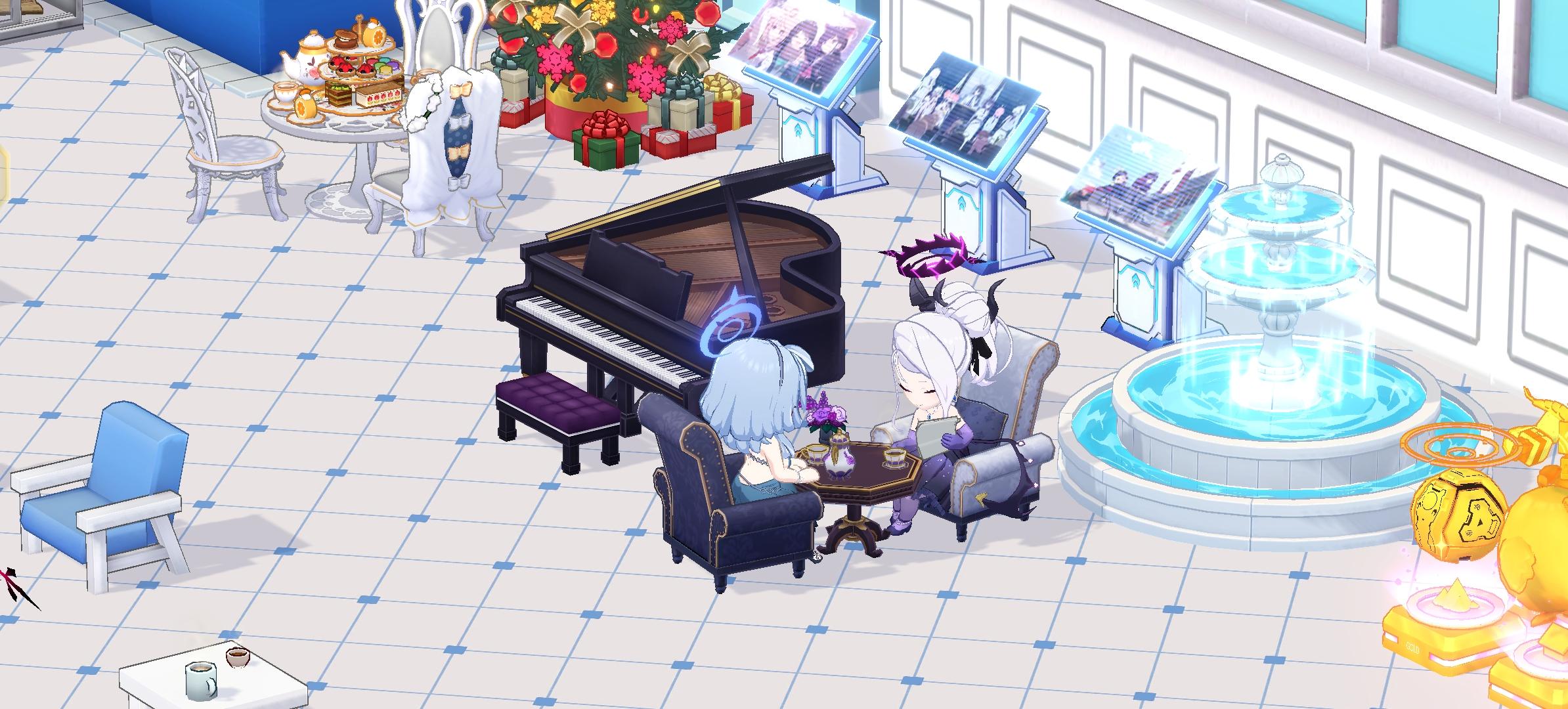 今天发现日奈在钢琴面前,正好之前看到自己有亚子和日奈的双人家具,就把亚子召唤过来。在收回钢琴的过程中,偶然触发到日奈的钢琴表演。你是说,日奈在钢琴上,点击钢琴可以触发表演!!!#蔚蓝档案 #蔚蓝档案国服 #游戏日常