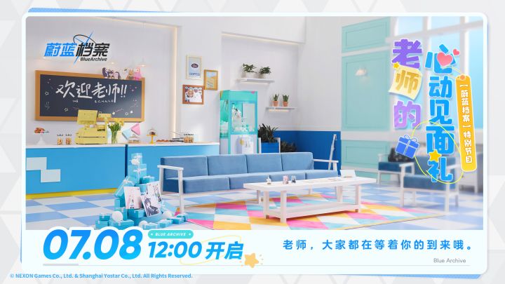 “咖啡厅布置完成,邀请函也发出去啦!一切准备就绪,嘿嘿~”《蔚蓝档案》前瞻特别节目——【老师的心动见面礼】将于7月8日(本周六)12:00正式发布,欢迎各位老师前来参加这场特别的入职仪式。“老师,大家都在等着你的到来哦。”_____________《蔚蓝档案》现已开启预约~别忘了和阿洛娜一起,开启您的第一份档案,完成预约哦!官方微博:官方公众号:蔚蓝档案#蔚蓝档案