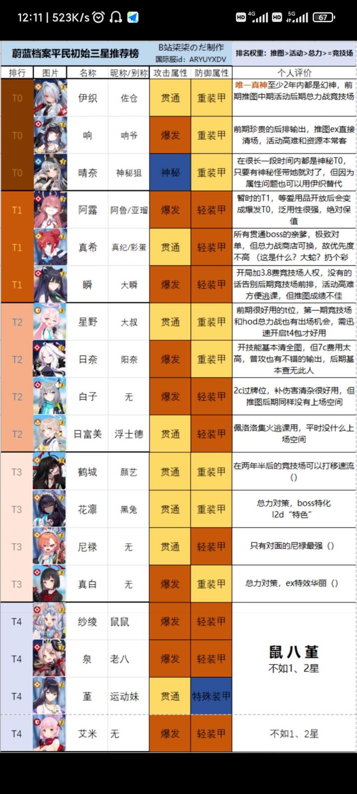 收集了各大up主做的初始推荐,然后整合了一下方便大家更好的了解这边也简单的介绍一下开局初始抽卡的流程国服开局可以重复抽取10次,然后抽取中可以选择一次最好的保存记录,并且继续抽卡,也就是说10选2,在这两次中,我们要选择最好的搭配和最强的人权,以便顺利的度过开荒初始抽卡推荐:优先级排名,不记录2星T0:伊织1:伊织:贯穿属性天花板,数值超模(必须要有适用于各个模式,初始抽卡的时候看到有