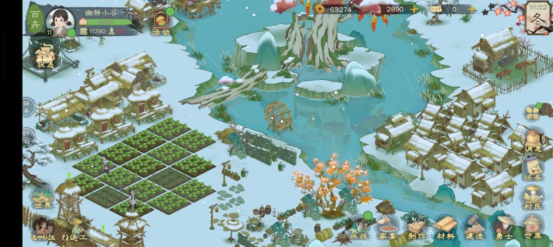 3区袅袅炊烟 UID:1059190 鸡窝和杂草,很重要。负担轻点也要做50上下的鸡窝,保证蛋炒饭是主食。体质关系到劳力成长,体质越高,劳力成长越快。 其次种田,它是后期铜币的主要来源了,就是麻袋和竹筐不够用,限制了你的上限[表情_汗]搞个60块田就差不多了,可以分割种植,也可以都种一种食物。 寿命71之后就无法劳作了,没看到有啥新的玩法,只能喂野兽或者等死。 铁锭每次尽力都买完,鸡窝和仓库需要一