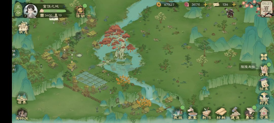 为大家整理了开荒必看的十条简易攻略,帮助大家快速上手~ 区服:3区-袅袅炊烟,游戏UID:1085296 1. 进游戏跟着指引走,等到能自由活动的时候,再建造几块农田,前期有四块田即可,建造太多了人手也不够,尽量用劳力高的人去管理农田,我用的是柳大富 种完作物后,记得施肥,有条件的可以氪金拿河肥施肥,没有问题也不大,用草肥即可 作物成熟需要时间,这期间记得派人去采野菜和浆果,用来过渡,解决吃饭问题