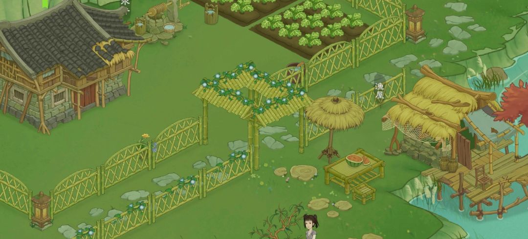 主要分三块 1、一块是所有的作坊之类的,按照分类分开,饮食/药/衣服/工坊等,方便判断材料维修还是铜钱(优先加固) 2、工作区 包括农田,各种树和草及园子 3、每日要点的区域,包括鸡,楼,地窖,蚕室
