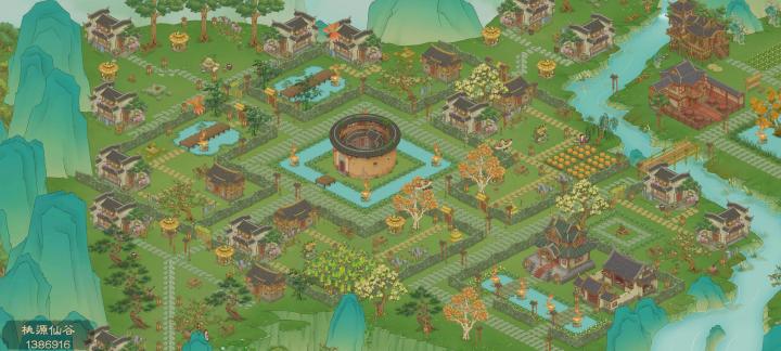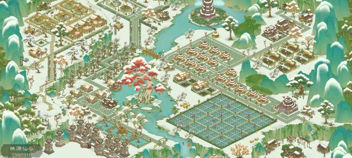 屋舍俨然,有良田、美池、桑竹之属。阡陌交通,鸡犬相闻。桃谷分为种植区、养殖区、居住区、商业娱乐区四个区域。有点强迫症,尽量整齐对称了#桃源记2 #桃源记2地表水布局大赛