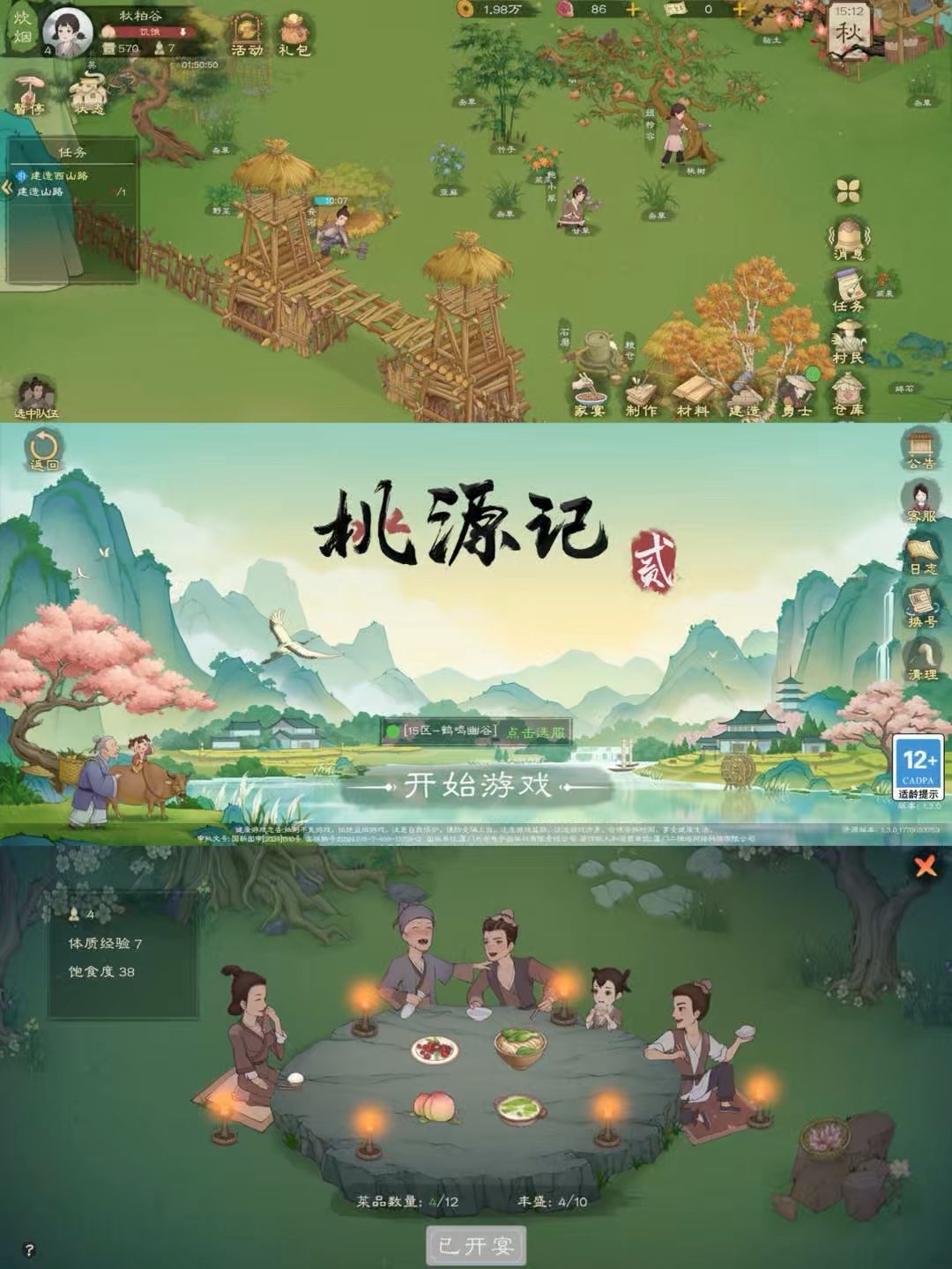·不是纯种田的手游,而是有压力的生存游戏(不过没有饥荒那么夸张)!!! ·《桃源记2》,P1。 ·游戏平台:安卓/IOS。 ·国风模拟生存创造游戏。 ·水墨风格还是很好看的~但是这里的村民是需要吃饭治病打怪的,得通过不断发展壮大村子让人们越过越好~玩一下时间就过去了…… ·缺点也是有的,0氪金的话,村民太少了,资源根本没办法收获太多~资源没办法整理,只能整理自己创造的建筑,强迫症不友好~ - #新