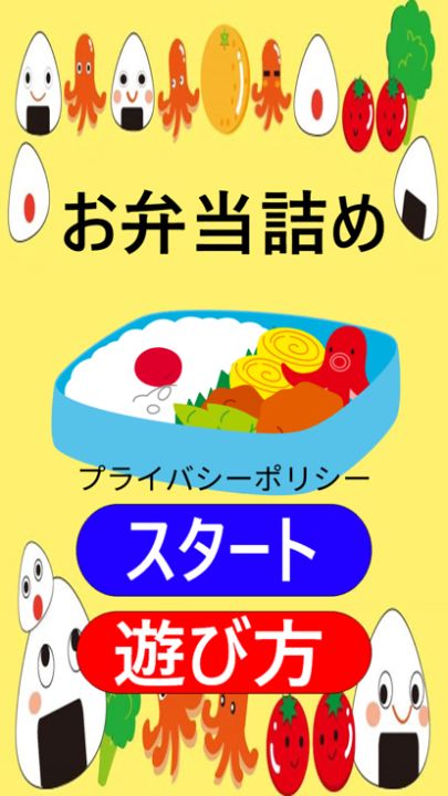 お弁当箱に好きな具材を自由に配置し、オリジナルの弁当を作る簡単ゲーム!