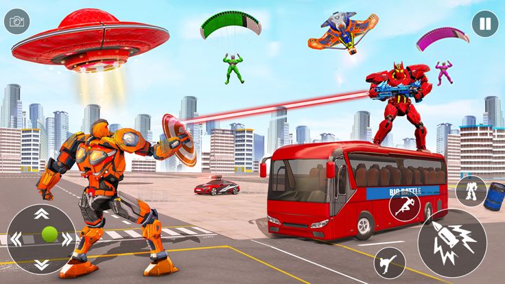 欢迎来到有史以来第一个火星战斗机器人游戏。火星星球受到外星人的攻击。地球科学家前往火星进行研究,但火星上的外星机器人袭击了他们。地球决定将机器人送上火星,用他们的超能力拯救科学家。外星机器人准备攻击科学家,通过扮演多变身机器人的角色来阻止邪恶机器人在这场宇宙飞船战争中的入侵。降落在火星行星的邪恶区域并阻止外星机器人,因为您是地球行星的唯一希望。打太空机器人战争以消灭敌人。将自己变成汽车、公共汽车、运输卡车和大猩猩机器人,以拯救地球上的科学家,从而对抗您的对手。在这个变形的汽车机器人游戏中,火星机...