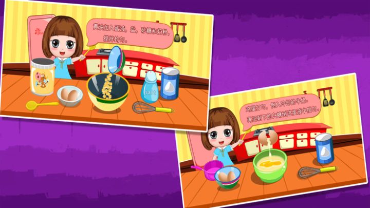 这是一个根据真实甜品食谱做成的亲子游戏,适合2-5岁的幼儿,游戏操作十分简单,可以有效启发孩子思维和思考,另一方面也可以让父母制作甜品的正确方法。游戏包含多个甜品的制作方法有炖蛋,黄金蛋糕,饼干,布丁,鲜奶冻,甜甜圈,樱桃奶酪和海绵蛋糕。