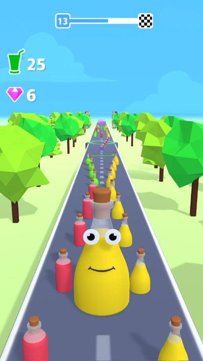 果汁冲冲冲是一款休闲跑酷小游戏,游戏中你需要操控可乐来左右移动,你需要收集相同颜色的果汁来增大自己,注意躲避障碍物,游戏中你也可以收集钻石,到达终点之后,你要把果汁倒出来展示自己的成果,快来试试吧。
