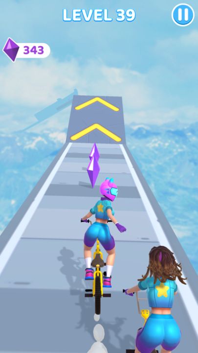 Pass the opposing bicycles and properly land on the platforms! The one who completes the lap the fastest wins! Let's see whether you can stay on your bike and maintain your balance.